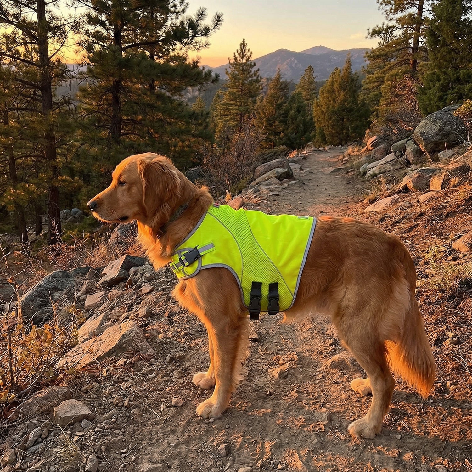- HIGH VISIBILITY: Crafted from vibrant florescent neon yellow 210D ripstop splice and with strategically placed reflective straps, The Mountain ensures your furry friend remains easily visible in low-light conditions. Whether it's an early morning walk or a late-night adventure, this vest keeps your dog's safety in the spotlight.